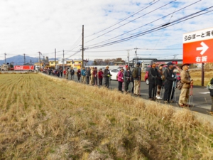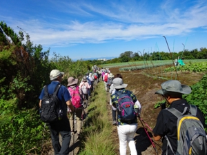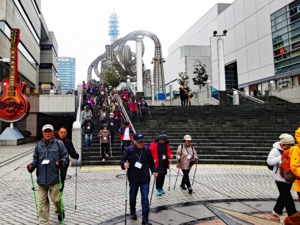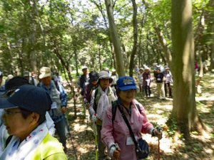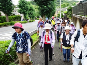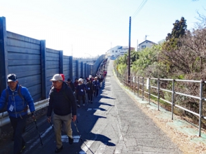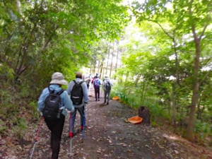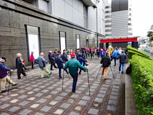 大人数で長い列、 前後でスタッフが細心の注意を払いながらのノルディックウォーキングでした。