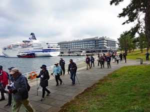 横浜みなとみらい地区でノルディックウォーキングを開催、 大さん橋には61000tの豪華クルーズ船アムステルダム号が停泊、 山下公園では秋バラが満開で迎えてくれました、秋空にも恵まれ、心癒されるノルディックウォーキングでした。