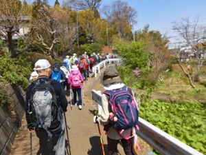 ・コース:かしわ台駅東口~長ヲサ児童公園~目久尻川遊歩道~瀧蔵神社~座間東文化センター ~芹沢公園グランド ~遊歩道~芹沢公園休憩所 ~さがみ野桜並木~さがみ野公園(解散)~さがみ野駅
