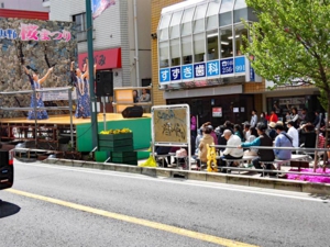 横浜スカイビル脇の広場でウォーミングアップを行いました。高速道路と一般道が並走、騒音が凄いですね。