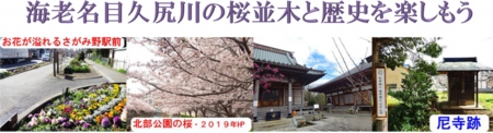 ・コース:かしわ台駅東口~長ヲサ児童公園~目久尻川遊歩道~瀧蔵神社~座間東文化センター ~芹沢公園グランド ~遊歩道~芹沢公園休憩所 ~さがみ野桜並木~さがみ野公園(解散)~さがみ野駅