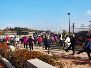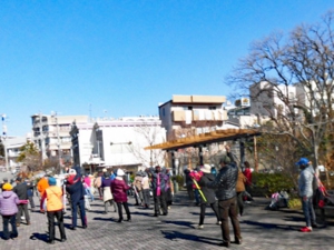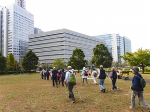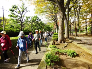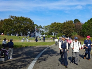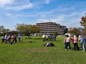 秋の穏やかな天候に恵まれて鶴ヶ峰駅から長坂谷公園を訪ねました。運動公園では、サッカー・野球に家族の声援が、遊具のある広場は子供の声が響きわたる。私達は広大な芝生広場でノルディックウォーキングゲームです。参加者はゲームを楽しみ笑い声が溢れました。