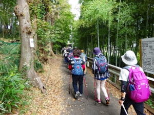 菅田井出戸公園です、アップダウンの多い公園でした。晩秋の青空に恵まれた文化の日、 西谷駅から旭区~緑区~ 神奈川区~保土ヶ谷区と区境の尾根を歩くノルディックウォーキングを開催。